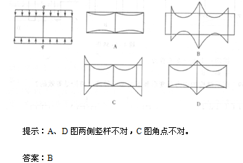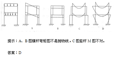 19. 图示二层框架在垂直均布荷载作用下的各弯矩图中,图( )是正确的。