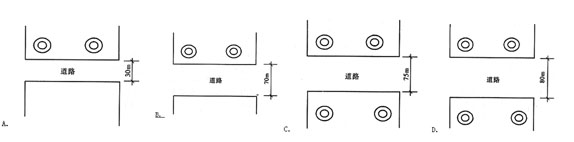 提示:道路宽度超过60m时,应在道路两边设置消火栓,并宜靠近十字路口。