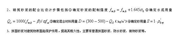 1、建筑砂浆由胶凝材料、细骨料、水等材料配制而成。主要用于砌筑砖石或建筑物的内外表面的抹面等。技术性质主要包括新拌砂浆的工作性(流动性和保水性)、抗压强度与强度等级(砂浆强度等级有M15.0、M10.0、M7.5、M5.0、M2.5五个等级)、粘结力。