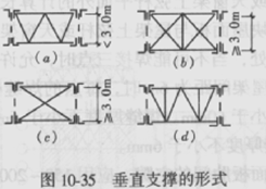 (2)屋架和天窗架的垂直支撑,可参考图10-35(a)-(d)的形式选用;其中,图10―35(c)一般用于天窗架两侧的垂直支撑,图10-35(d)为兼作檩条的垂直支撑。