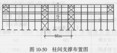 2.下段柱之柱间支撑的位置,决定纵向结构温度变形的方向和附加温度应力的大小,因此,应尽可能没在温度区段的中部。当温度区段的长度不大时,可在温度区段中部设置一道下段柱柱间支撑(图10-48);当温度区段长度大于