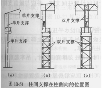 5.阶形柱上段柱的柱间支撑在柱侧向的位置(图10-51),当上段柱的截面高度≤