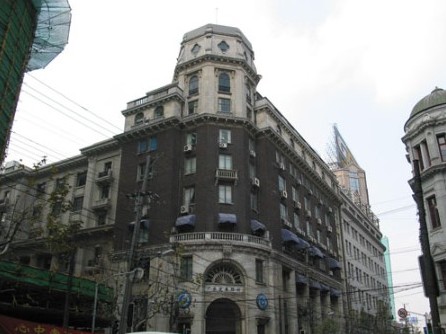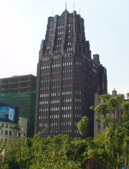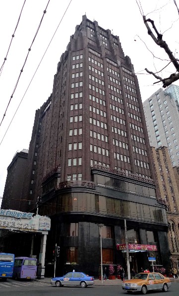 南京西路。1932年动工,1934年落成。大楼24层,其中地下2层,钢框架结构,钢筋混凝土楼板,它是当时全国也是亚洲最高的建筑物,并在上海一直保持高度上的最高纪录达半个世纪。此建筑用地局促,平面布置成工字型,造型高耸挺拔,是20年代美国摩天楼的翻版。