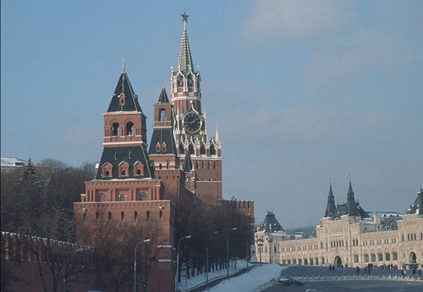克里姆林宫的“克里姆林”在俄语中意为“内城”,曾是俄国历代帝王的宫殿、莫斯科最古老的建筑群,始建于1156年,尤里?多尔戈鲁基大公在其分封的领地上,用木头建立了一座小城堡,取名“捷吉涅茨”。1367年改为石墙。十五世纪的砖砌宫墙(周长2.5公里)保留至今。十五至十六世纪中央教堂广场上建有圣母升天教堂、天使教堂、报喜教堂、伊凡大帝钟楼和多棱宫等。1788年参议院大厦(今政府大厦)竣工。1937年,在塔楼上装置五颗克林姆林宫红星。19世纪40年代建成克里姆林宫大厦。宫墙四周有塔楼20座。宫内塔楼中最宏伟的有斯巴达克、 尼古拉、特罗伊茨克、保罗维茨、沃多夫兹沃德等塔楼。978年11月27日,莫斯科的老师们修复克里姆林宫建筑。整个修复工程持续到80年代。