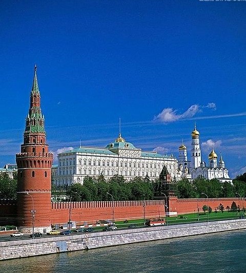 克里姆林宫,它的建筑形式融合了拜占庭、俄罗斯、巴罗克和希腊罗马等不同风格。这座古城堡现在不仅是俄罗斯政府所在地,而且是俄罗斯历代艺术珍品的储藏宫。克里姆林宫在俄罗斯首都莫斯科的市中心,莫斯科河畔,是一组气势轩昂的建筑群。十月革命后的70余年中成了原苏联国家政治活动的中心及苏俄的党政机关所在地,以后成为苏联的党政机关所在地。苏联解体后,这里成了俄罗斯政府的代称。其坐落在涅格林纳河和莫斯科河汇合处的鲍罗维茨丘陵上。南临莫斯科河,西北依亚历山德罗夫花园,东南界红场。