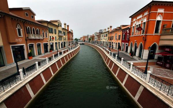 在复制经典建筑司空见惯后,一些地方开始大手笔地复制名城名镇,试图将建筑、自然环境和风土人情“打包移植”。图为天津武清,一处零售名品折扣购物中心以意大利名城佛罗伦萨的面貌出现。