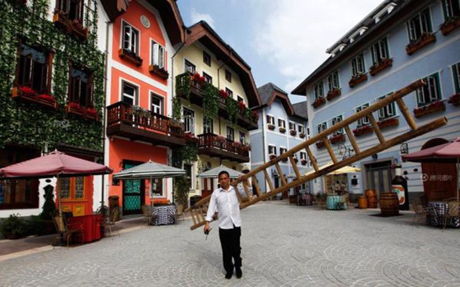复制名城最登峰造极的案例在广东惠州。惠州美称“岭南名郡”,却一直缺少得到公认的文化项目。2012年6月,五矿集团在惠州克隆修建的奥地利小镇哈尔施塔特对游人开放。该小镇耗资60亿元,被称为惠州的“文化新名片”。小镇的面世引来种种非议。有人称建筑可以复制,韵味复制不来,没有灵魂的小镇走不远;而原版哈尔施塔特的居民则认为“仿造者没有征得房子主人的同意”。尽管如此,建造者们认为小镇很有“钱景”,非议只会给小镇带来更多人气。