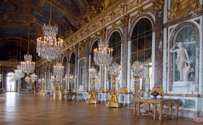 凡尔赛宫位于巴黎西南部,17世纪由路易十四下令修建。宫殿西面是一座风格独特德法兰西式大花园,风景秀丽,其中轴线长达3公里,大小道路都是笔直的,被称为“跑马者的花园”。凡尔赛宫及其园林堪称法国古建筑的杰出代表。其宫殿外观宏伟壮观,内部陈设及装潢也富有艺术魅力。200多间大殿小厅金碧辉煌,豪华非常。墙面多由五彩大理石镶制,或用锦缎裱糊。宫室里吊着各种巨型水晶灯,晶莹璀璨。主要宫殿的墙壁和天花板上布满壁画和天顶画,题材主要是神话故事和国王战绩。 1833年凡尔赛宫被辟为国家历史博物馆,1980年被列入世界文化和自然遗产名录。
