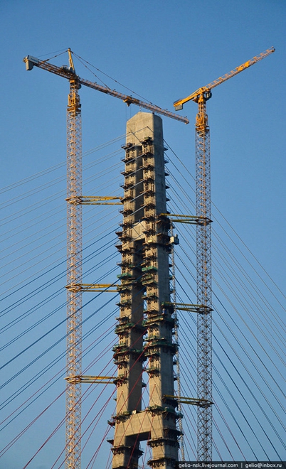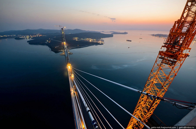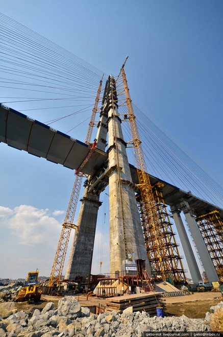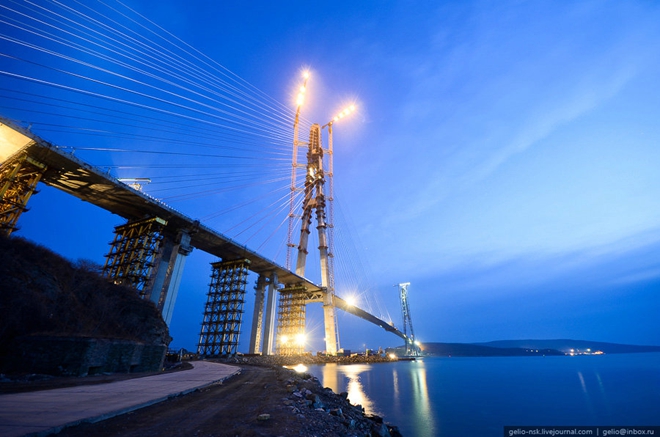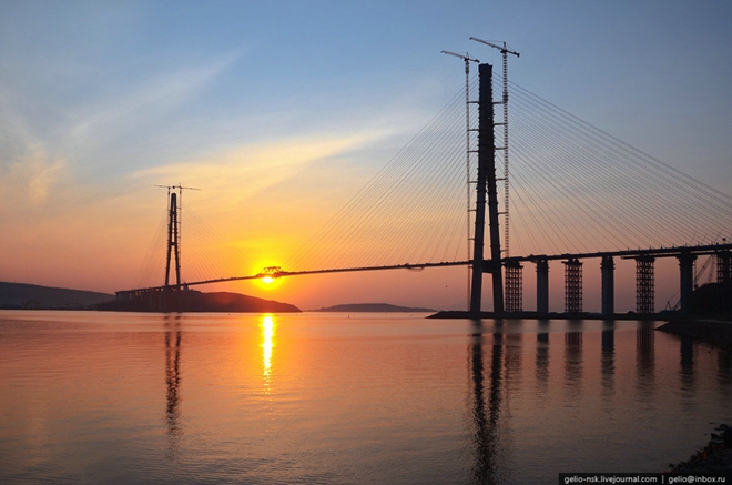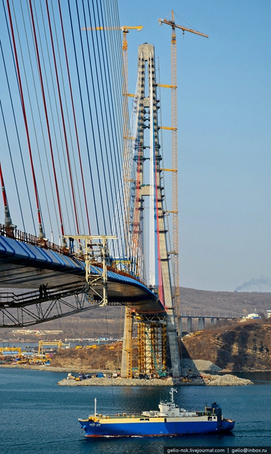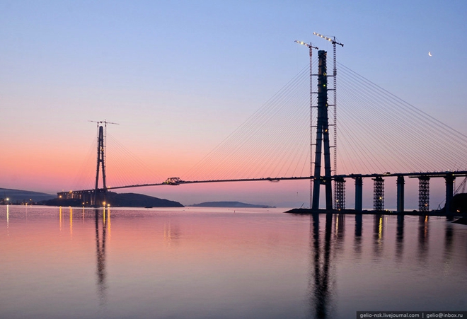 跨东博斯普鲁斯海峡通往俄罗斯岛桥梁的建设,是2012年亚太经合组织峰会召开前,符拉迪沃斯托克拟建项目。斜拉桥连接符拉迪沃斯托克大陆和岛屿部分,将成为滨海边区运输系统的重要链条。该桥的中心跨度长度――1104米,将创世界纪录,牵索长――580米。距水平面高度 ――70米。桥墩高度――324米。