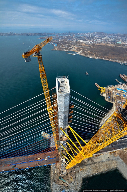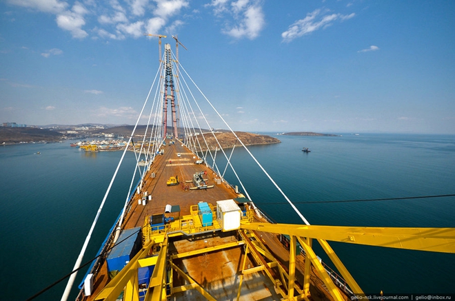 俄罗斯岛距海参崴咫尺之遥,现在正在修建与海参崴相连的跨海大桥。已经初显壮观景象,施工现场...