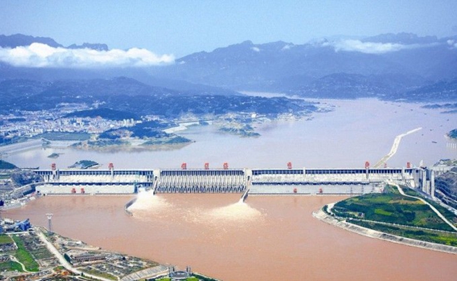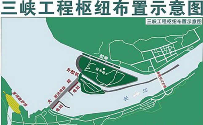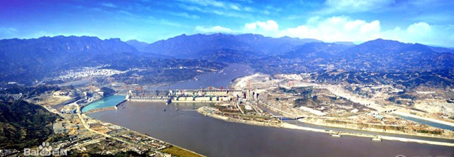 1994年12月14日,当今世界第一大的水电工程--三峡大坝工程正式动工,它位于西陵峡中段的湖北省宜昌市境内的三斗坪,距下游水利枢纽工程38公里。三峡大坝工程包括主体建筑物工程及导流工程两部分,工程总投资为954.6亿元人民币(按1993年5月末价格计算),其中枢纽工程500.9亿元;113万移民的安置费300.7亿元;输变电工程153亿元。工程施工总工期自1993年到2009年共17年,分三期进行,到2009年工程全部完工。大坝为混凝土重力坝,坝顶总长3035米,坝顶高程185米,正常蓄水位 175米,总库容393亿立方米,其中防洪库容量221.5亿立方米,能够抵御百年一遇的特大洪水。配有26台发电机的两个电站年均发电量849亿度。航运能力将从现有的1000万吨提高到5000万吨,万吨级船队可直达重庆,同时运输成本也将降低35%。[2]