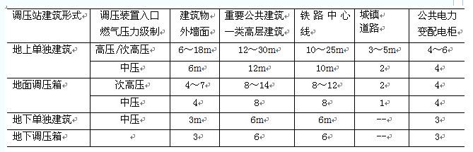 调压站距离建筑物、构筑物水平净距(m)
