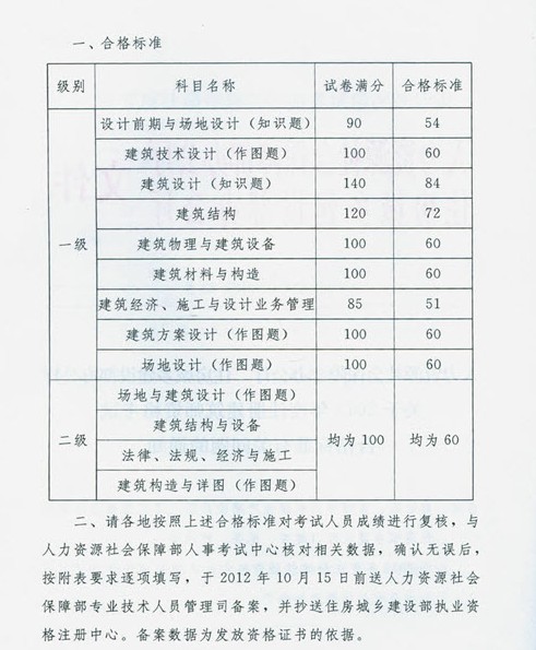 - 一级注册建筑师考试合格标准及成绩有效期2025-09-06