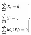 平面任意力系平衡的充分和必要条件是:该力系的主矢及力系对于任一点的主矩均等于零。若用解析式表示,即为: