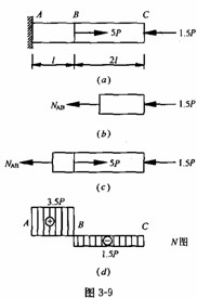 对于图 3 一 10 ( b )的杆件,若温度升高△t,由于杆件两端固定(即为超静定),阻止了杆件的自由伸缩,这样杆内将产生温度应力。显然,如果该杆温度升高(△t> 0 ) ,则杆内将产生压力;若温度降低( △ t < 0 ) ,则杆内将产生拉力。