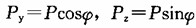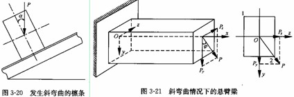 例如图 3-21 所示的矩形截面悬臂梁,其自由端作用一与截面纵向形心主轴成夹角φ的集中荷载P。将荷载 P 沿 y 、 z 两个形心主轴方向分解,则有