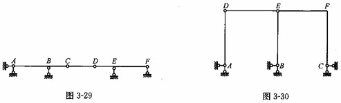 【例3 -7】 分析图 3 -29 和图 3 -30 所示体系的几何组成。
