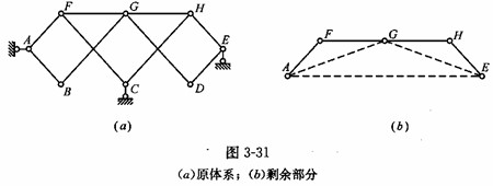 ( 2 )如果体系中存在二元体,可逐个撤除二元体,再对余下的部分进行分析。这不会改变原体系的几何组成性质。