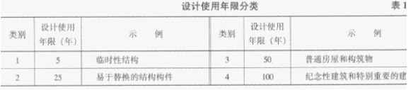 由此可见,我国通常的建筑结构设计的使用年限是50年。对于按照我国现行设计规范选用的可变作用及与时间有关的材料性能等取值而选用的时间参数则称为设计基准期。它不等同于建筑结构的设计使用年限。《统一标准》规定的设计基准期为50年。相应的《建筑结构荷载规范》所考虑的荷载统计参数都是按设计基准期为50年确定的,如设计时需采用其他设计基准期,则必须另行确定在设计基准期内最大荷载的概率分布及相应的统计参数。