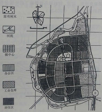 以下为一占地约5平方公里、60000人口的城镇分区图(图2- 26),其污水处理厂选址的较好位置是:(2012)