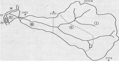 下列典型的泥石流分区概念图(图2 - 21)中,流通区是:(2011)