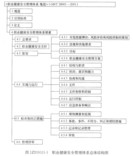 《职业健康安全管理体系规范》(GB/T 28001--2001)由“范围”、“引用标准”、“定义”和“职业健康安全管理体系要素”四部分组成。“职业健康安全管理体系要素”是管理体系的具体内容。