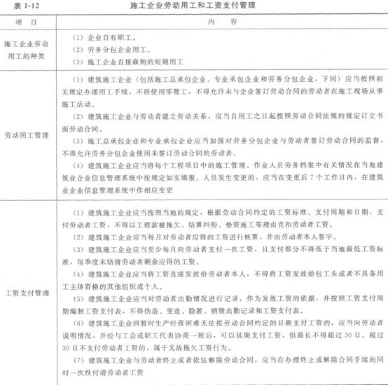 命题考点十二 施工企业人力资源管理的任务$lesson$