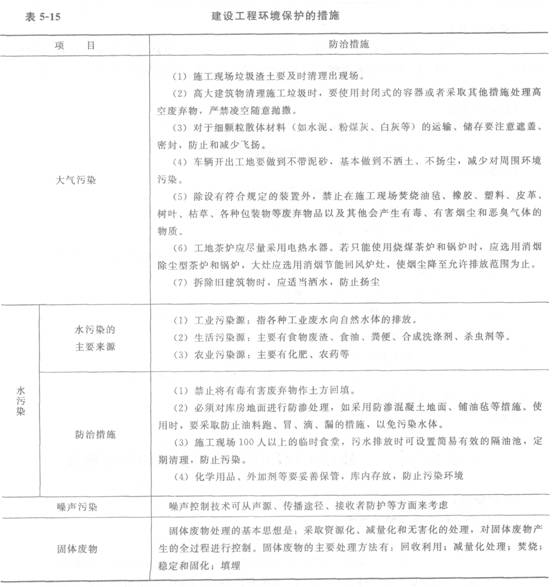 建设工程环境保护的措施见表5―15。