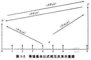 一次支付终值;一次支付现值;等额资金终值;等额资金现值;本期末即等于下期初;A与P隔一期;A与F同时发生。