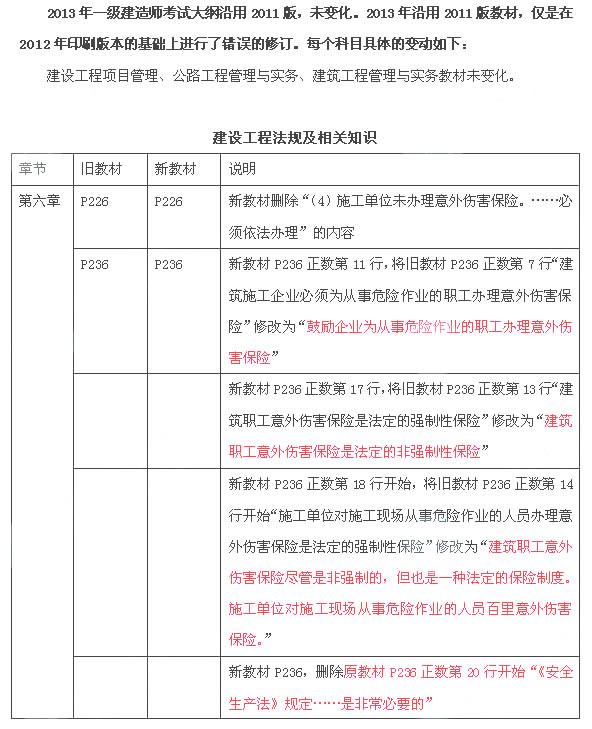 摘要 2013年一级建造师《建设工程法规》教材变动