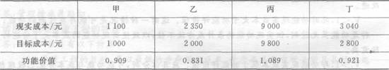 2.某项目的建筑工程可划分为甲、乙、丙、丁四个功能区域,下表是各功能区域现实成本和目标成本,根据功能价值,应作为价值工程活动首选对象的是()。[2010]