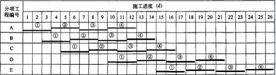 (3)解:本工程流水步距为K=3d,流水工期为TP=(5+4-1)×3-2+4=26d,其流水施