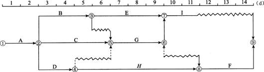 83.某分部工程双代号时标网络计划如下图所示,该计划所提供的正确信息有( )。