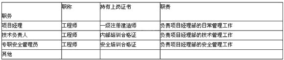 架成端等工作量,工程采用包工不包料的形式承包。项目经理部的人员构成情况如下表: