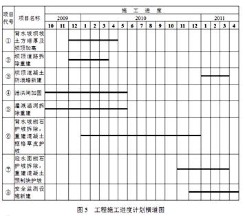 事件一:施工单位根据总体进度目标编制了本工程施工进度计划横道图,如图5所示。