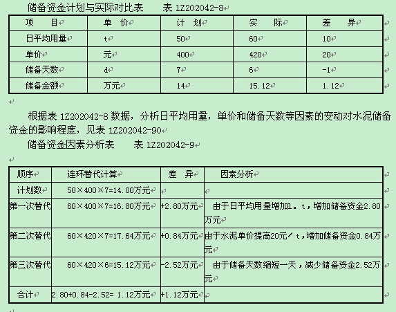材料的储备资金是根据日平均用量、材料单价和储备天数(即从采购到进场所需要的时间)计算的。上述任何一个因素变动,都会影响储备资金的占用量。材料储备资金的分析,可以应用“因素分析法”。