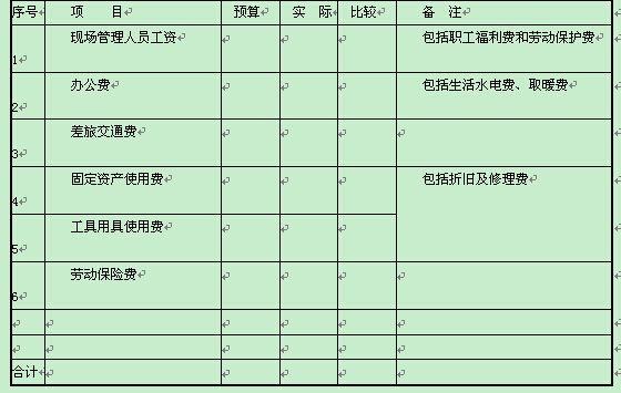 现场管理费分析,也应通过预算(或计划)数与实际数的比较来进行。预算与实际比较的表格形式见表1Z202042-100