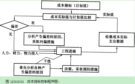管理行为的控制程序和成本指标的控制程序是对项目施工成本进行过程控制的主要内容,这两个程序在实施过程中,是相互交叉、相互制约又相互联系的。只有把成本指标的控制程序和管理行为的控制程序相结合,才能保证成本管理工作有序地、富有成效地进行。图1Z202032所示是成本指标控制程序图。