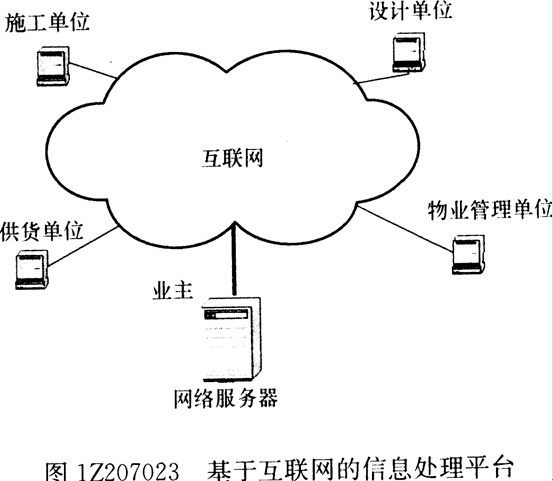 (2)通过基于互联网的项目专用网站(PSWS一Project Specific Web Site)实现业主方内部、业主方和项目参与各方,以及项目参与各方之间的信息交流、协同工作和文档管理(如图1Z207023所示);或通过基于互联网的项目信息门户( PIP――Project Information Portal)ASP模式为众多项目服务的公用信息平台实现业主方内部、业主方和项目参与各方,以及项目参与各方之间的信息交流、协同工作和文档管理;