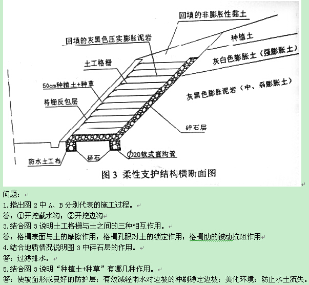 A.锚杆钢丝网喷浆;B.浆砌片石骨架植草护坡