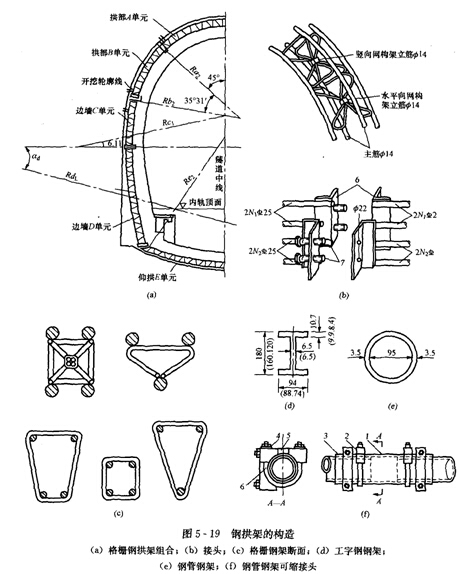钢支撑具有承载能力大的特点,常常用于软弱破碎或土质隧道中,并与锚杆、喷混凝土等共同使用。钢支撑按其材料的组成可分为钢拱架和格栅钢架。