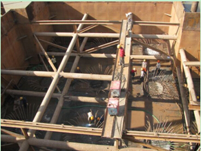 1.当承台位置处于干处时,一般直接采用明挖基坑,并根据基坑状况采取一定措施后,在其上安装模板,浇筑承台混凝土。
