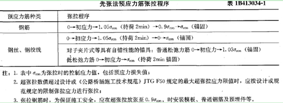 8 .张拉程序按设计文件或技术规范的要求进行。设计无规定时,其张拉程序可按表1B413034 一 2 的规定进行。