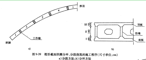 装配式混凝土、钢筋混凝土拱圈适用于箱形拱、肋拱及箱肋组合拱(以下均称箱形拱)的少支架或无支架施工。