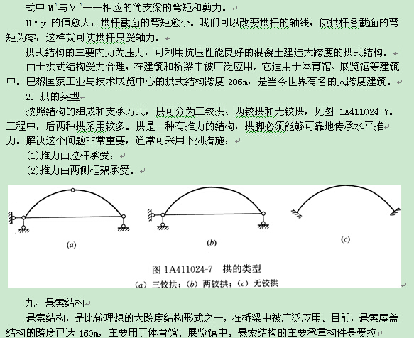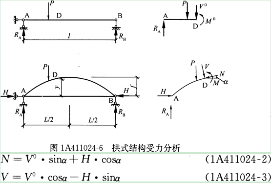 拱是一种有推力的结构,它的主要内力是轴向压力。从图1A411024-6可以看出,梁