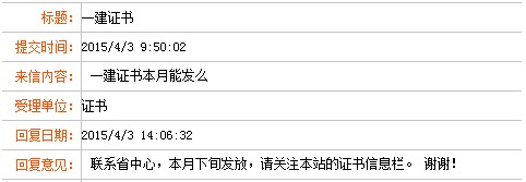 摘要 联系省中心,本月下旬(即4月下旬)发放,请关注环球网校证书信息栏。