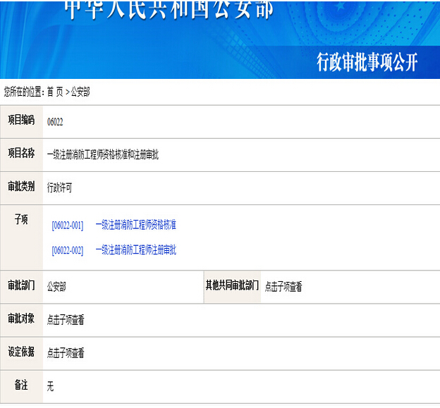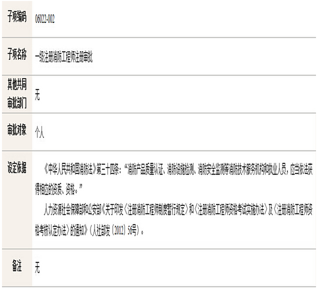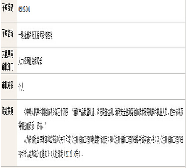 项目名称: 一级注册消防工程师资格核准和注册审批