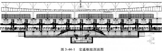 >> 根据下面材料,回答{TSE}题:某大型交通枢纽(图3-44-1)地上2层、地下3层,