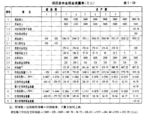 问题(3):编制项目资本金现金流量表,见表1-24