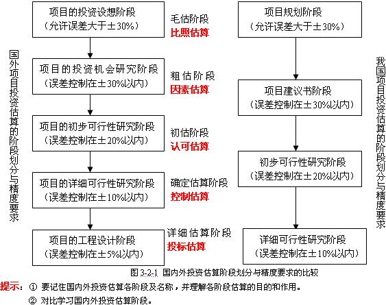 国内外项目投资估算的阶段划分与精度要求如下图所示。